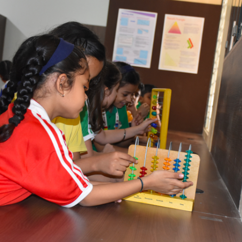 Our Maths Lab provides students with a hands-on and engaging environment to explore the fascinating world of numbers and patterns. It offers an opportunity for learners to discover mathematical concepts through a variety of educational kits such as the Triangle Kit, Fraction Kit, Abacus, and Wooden Kits for mathematical operations, among others.